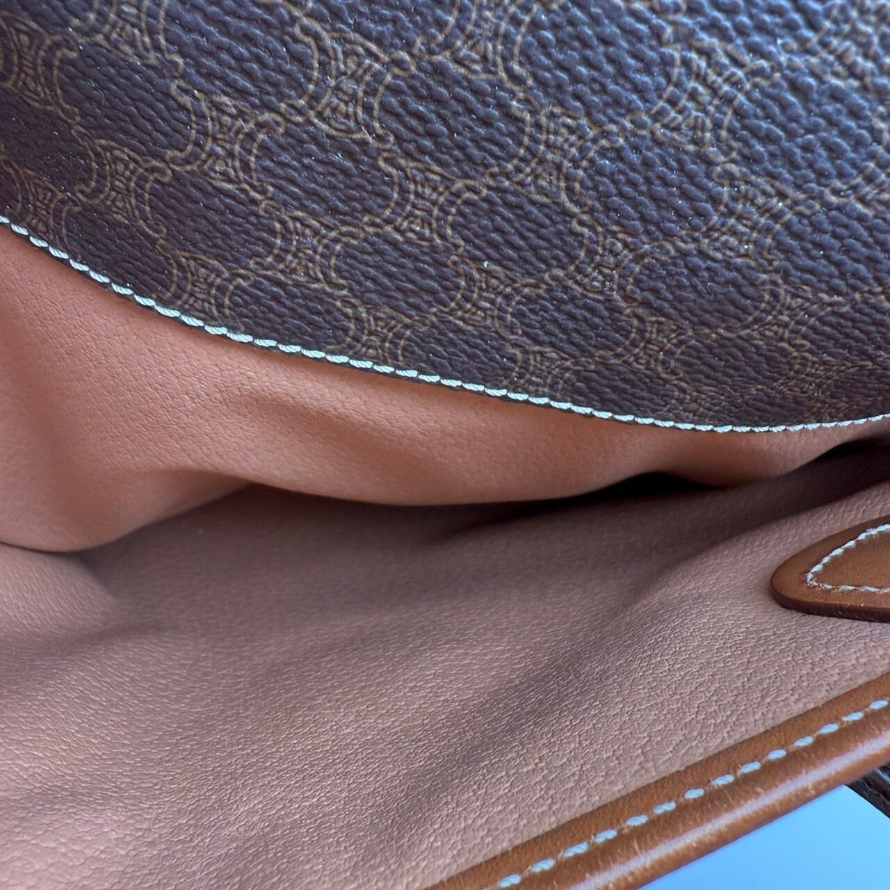 クラシカルなマカダム柄と、CELINEの象徴であるトリオンフ金具が魅力のミニボストンバッグ。