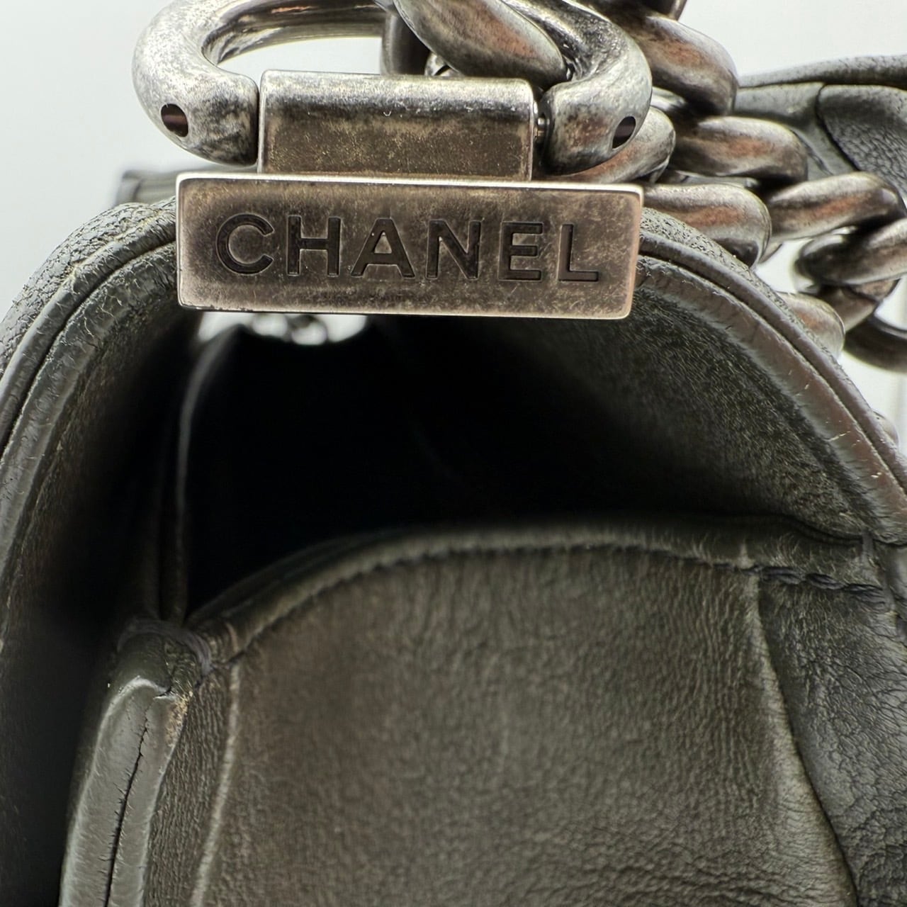 ボーイシャネル スタッズ チェーンショルダーバッグ ハンドバッグ A67086(21番台)|ブラック×シルバー|レザー