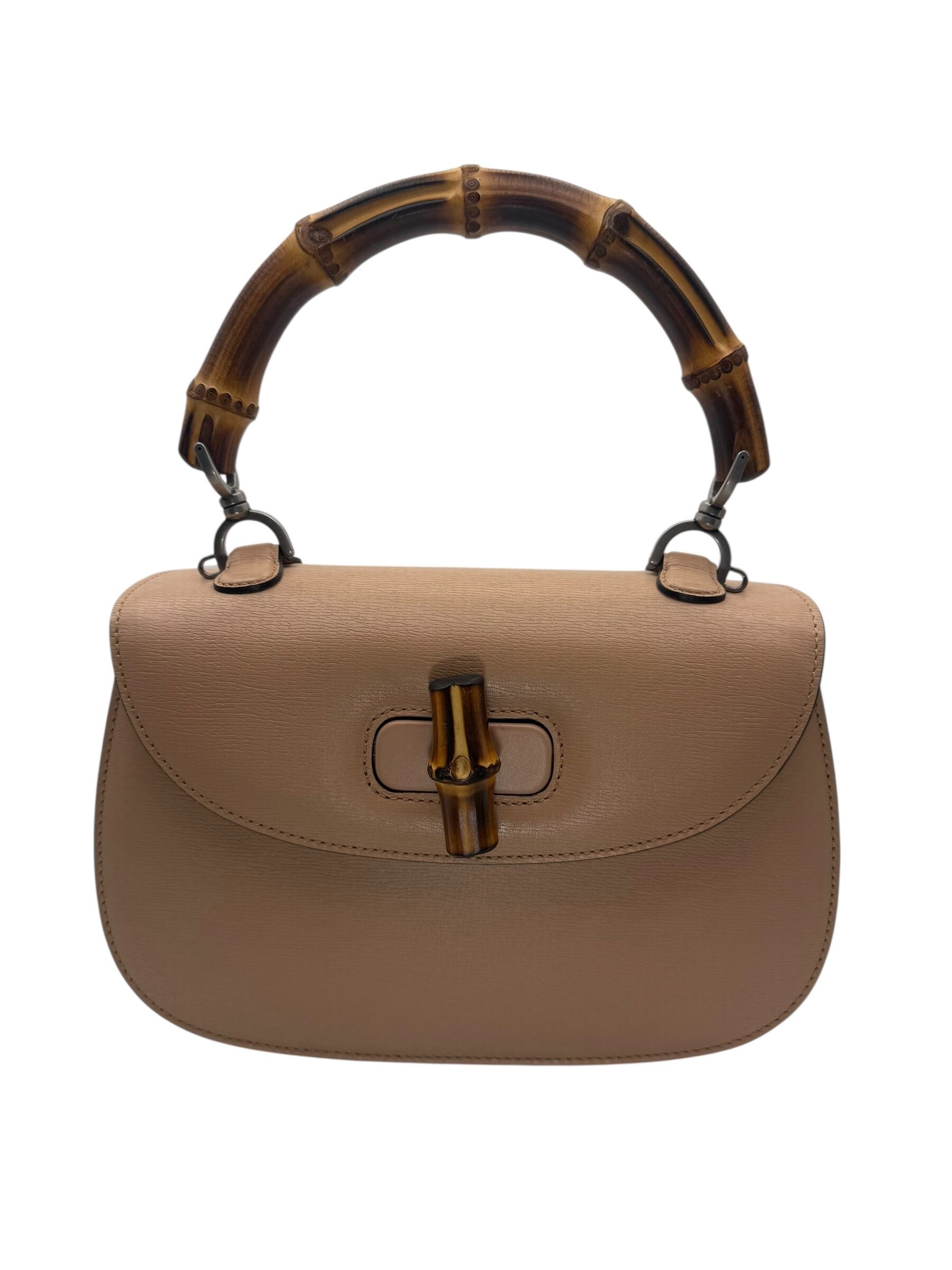 GUCCI グッチ 新型 バンブー ターンロック レザー 本革 ショルダー 2way ハンドバッグ トートバッグ ベージュ 409398